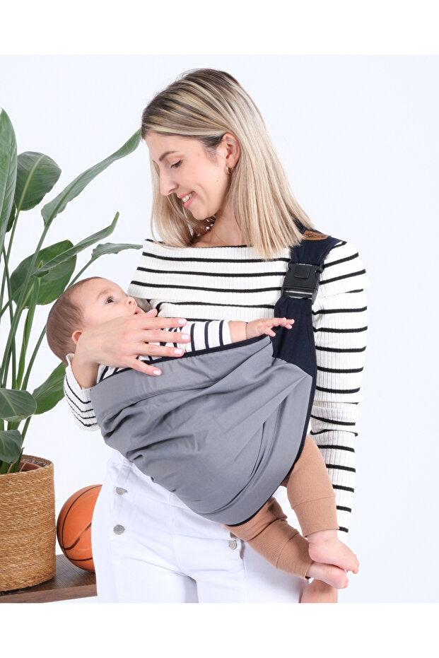 Evet! Sadece omzunuza geçirin, kayışını ayarlayın ve bebeğinizi yerleştirin; kafa karıştırıcı sargılara, tokalara veya yardıma gerek yok